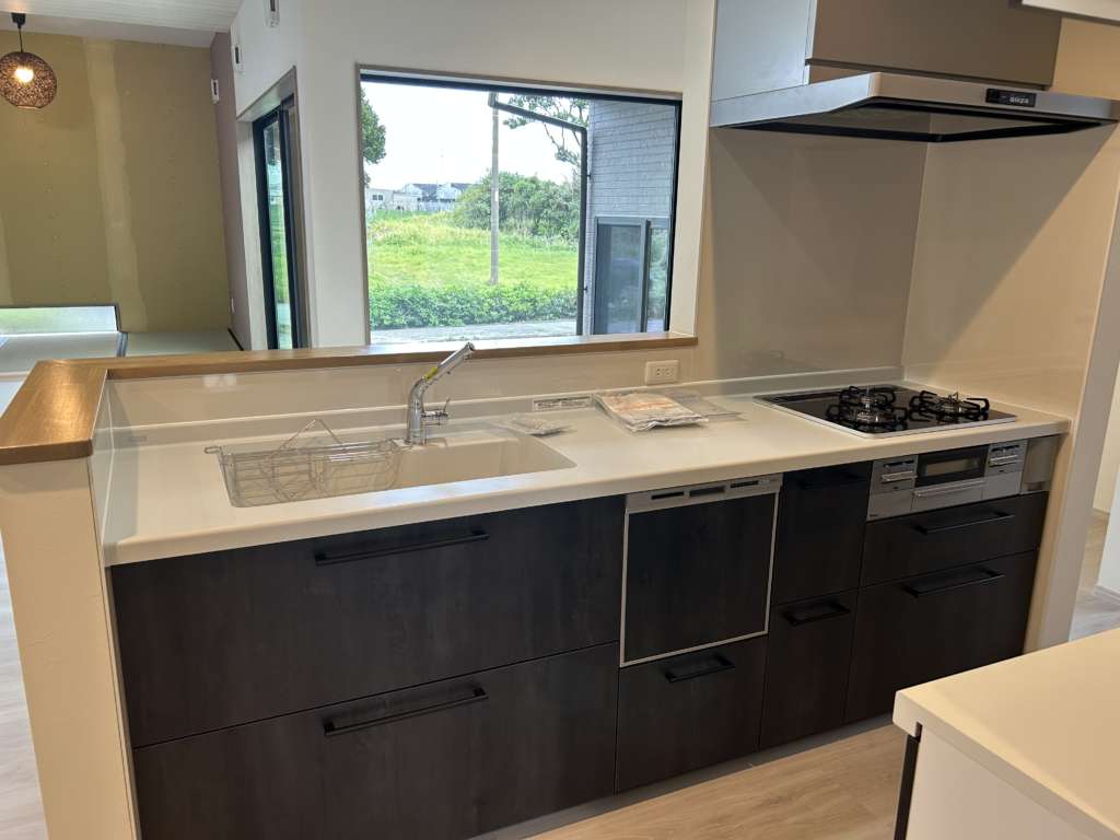 広い敷地にコの字の平屋です。どの部屋にいても明るく広がりのある空間です。小鳥、猫、犬と家族が増え賑やかな生活スタートです。